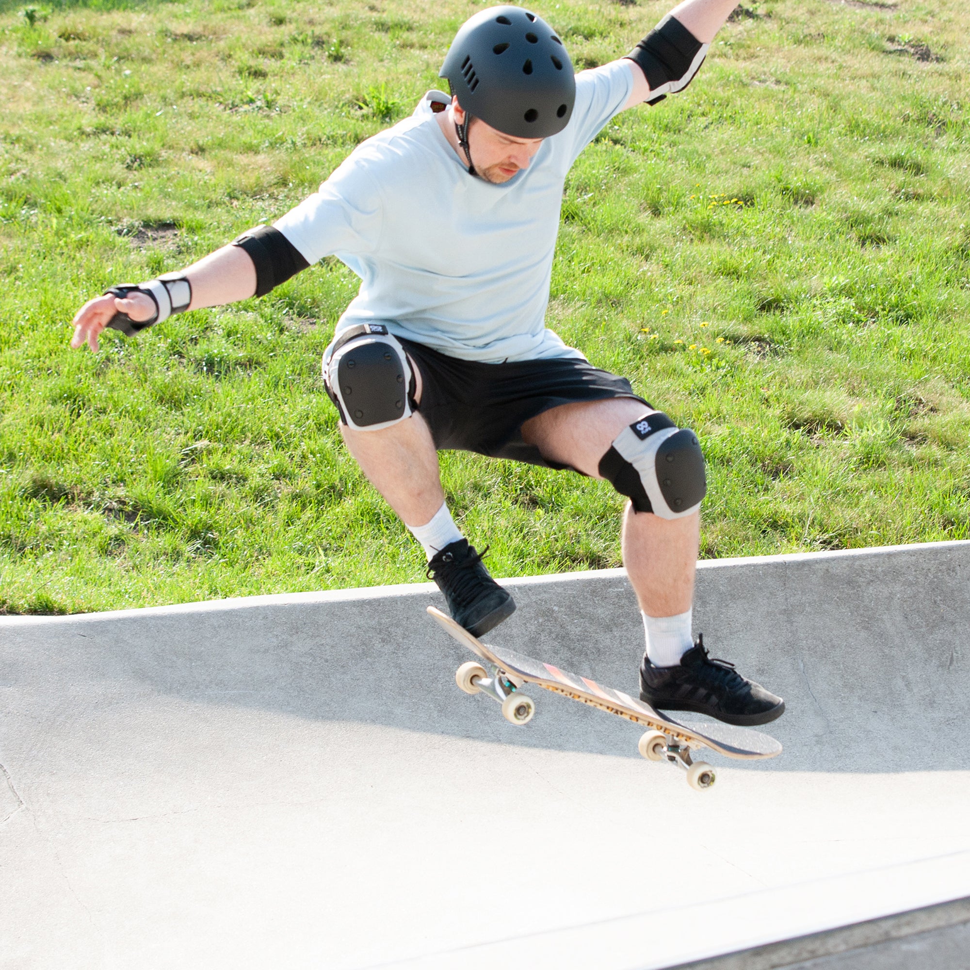 Du bist mit deinem Skateboard im Skatepark unterwegs oder fährst mit deinem Scooter oder mit deinem Fahrrad durch die Stadt? – Die richtige Schutzausrüstung ist notwendig. Ein passender Skateboard-Helm ist Pflicht, aber auch Knieschoner, Ellenbogenschoner und Handgelenkschoner sollten nicht fehlen. Besonders bei Kindern und Anfängern ist der Schutz wichtig, um Verletzungen zu vermeiden.